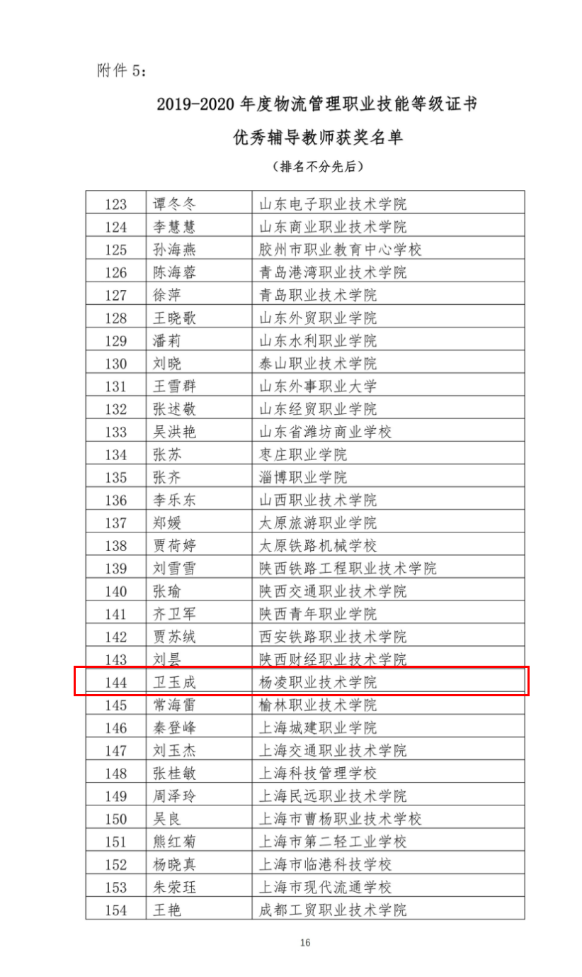 近日,中国物流与采购联合会公布了2019-2020年度物流管理职业技能等级证书先进单位及个人名单,学校荣获“优秀师资培训基地”称号,经济与贸易学院教师卫玉成被评为“优秀辅导教师”。