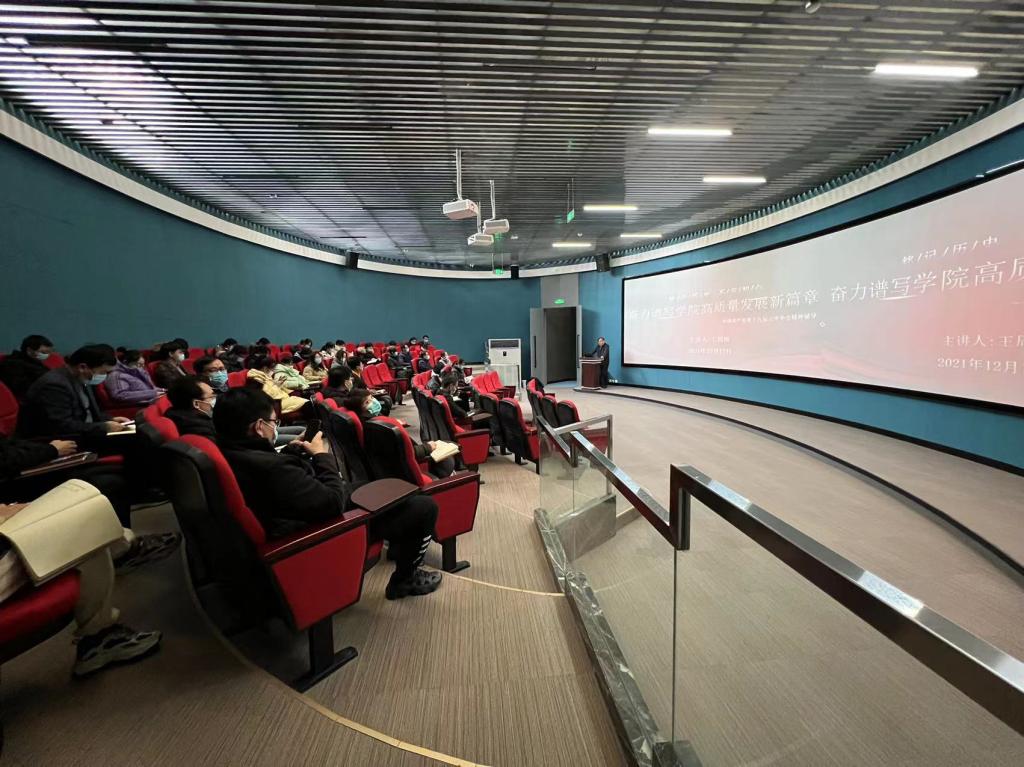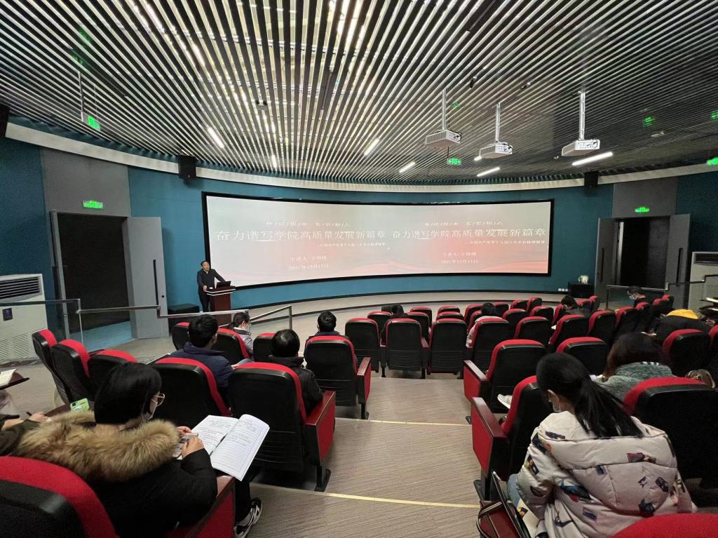 12月17日下午,校长王周锁以"铭记历史、不忘初心,奋力谱写学院高质量发展新篇章"为主题,在南校区云实训中心为教职工讲了一次“学习党的十九届六中全会精神”专题党课。水利工程学院、信息工程学院党总支委员、党支部委员以及党员代表聆听了此次党课。