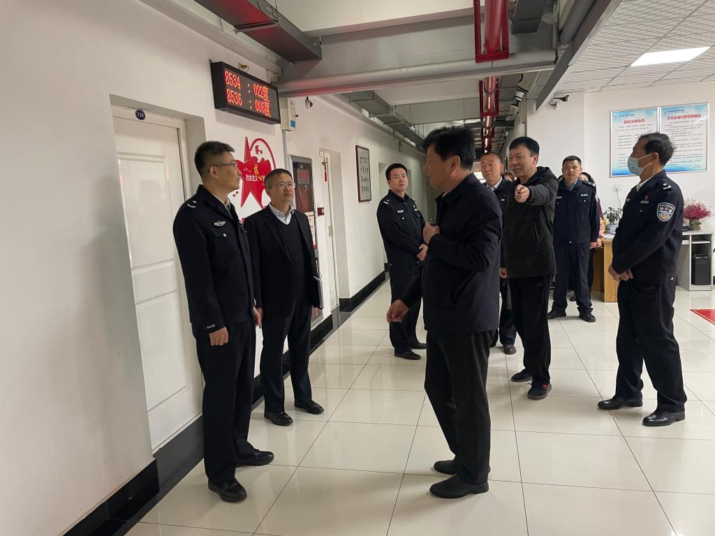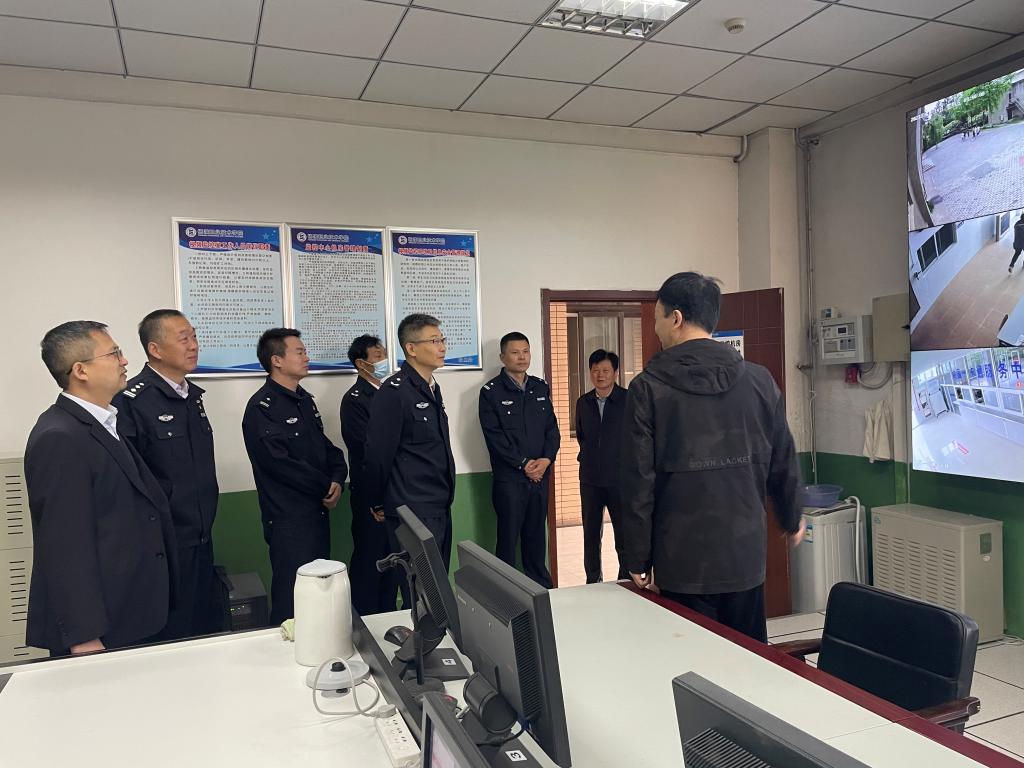 4月14日,省公安厅“下基层、解难题、办实事、严督导”第二轮次第四督导组组长、省禁毒总队政委王龙一行9人,来校督导检查校园安全工作。副校长张朝晖,学工部部长陈军峰、保卫部部长周宁陪同检查。