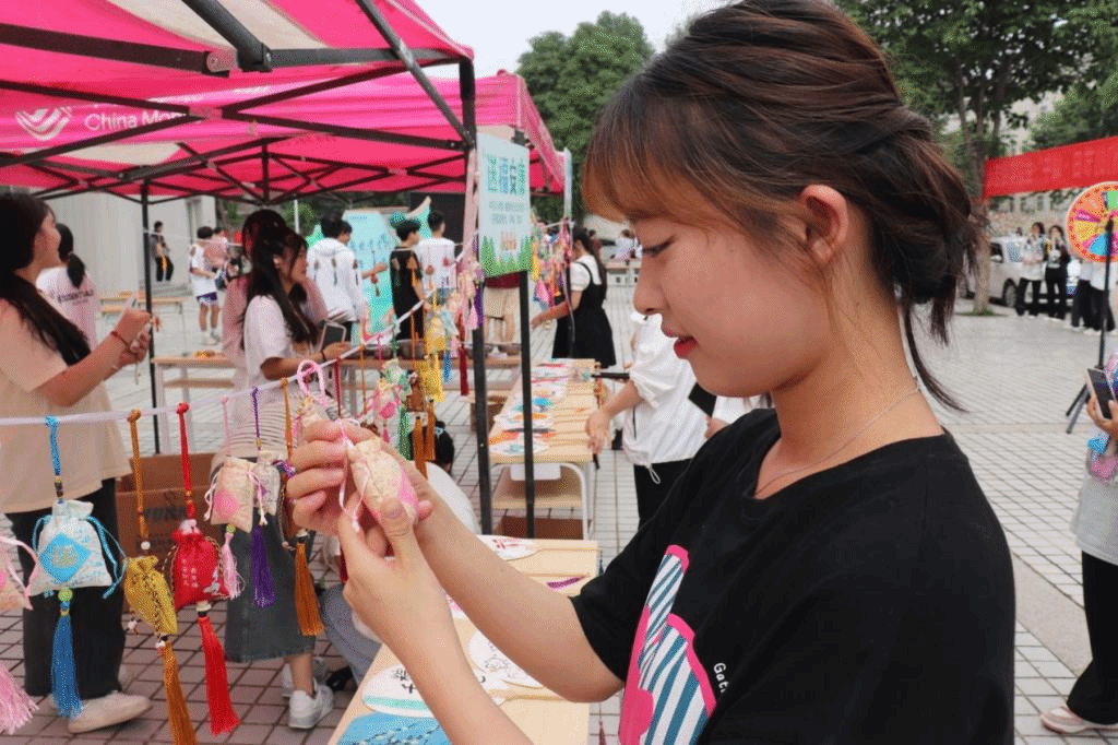 6月19日,旅游与管理学院在北校区组织开展“妙趣端午,与粽不同”端午节活动。活动包括发放粽子、粽子运输机、射五毒、粽子滚滚来、悬挂的粽子、粽子保龄球、粽子套圈、艾草香囊DIY和旱地龙舟等,让师生在活动中感受传统文化魅力。