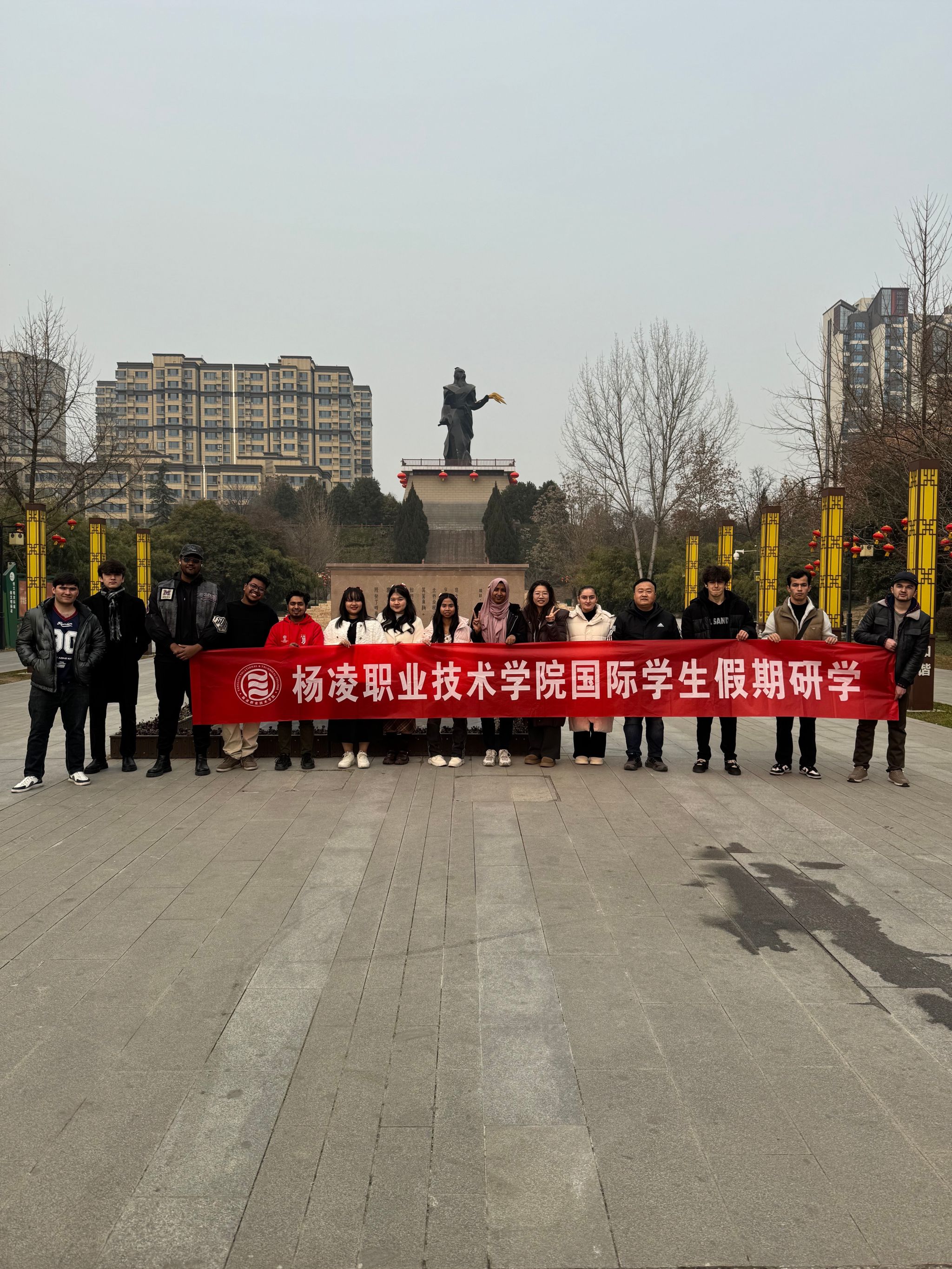 春节前夕,由国际学院教师带队,组织开展研学活动。国际学生们在研学之旅中参观了上合组织现代农业交流中心和后稷教稼园,在中国古代农业、现代农业、当代农业和未来农业中驻足、流连忘返、沉浸其中。春节期间,国际学生拿起毛笔,蘸上墨汁,在老师指导下,神情专注、一笔一划地写下“福”字,将对新年的美好期许融入字里行间。大家围坐一起,品尝传统饺子,走上街头在杨凌老街道感受中国春节民俗。国际学院将继续致力于服务学校国际化发展,推动学校国际化办学更细更实。