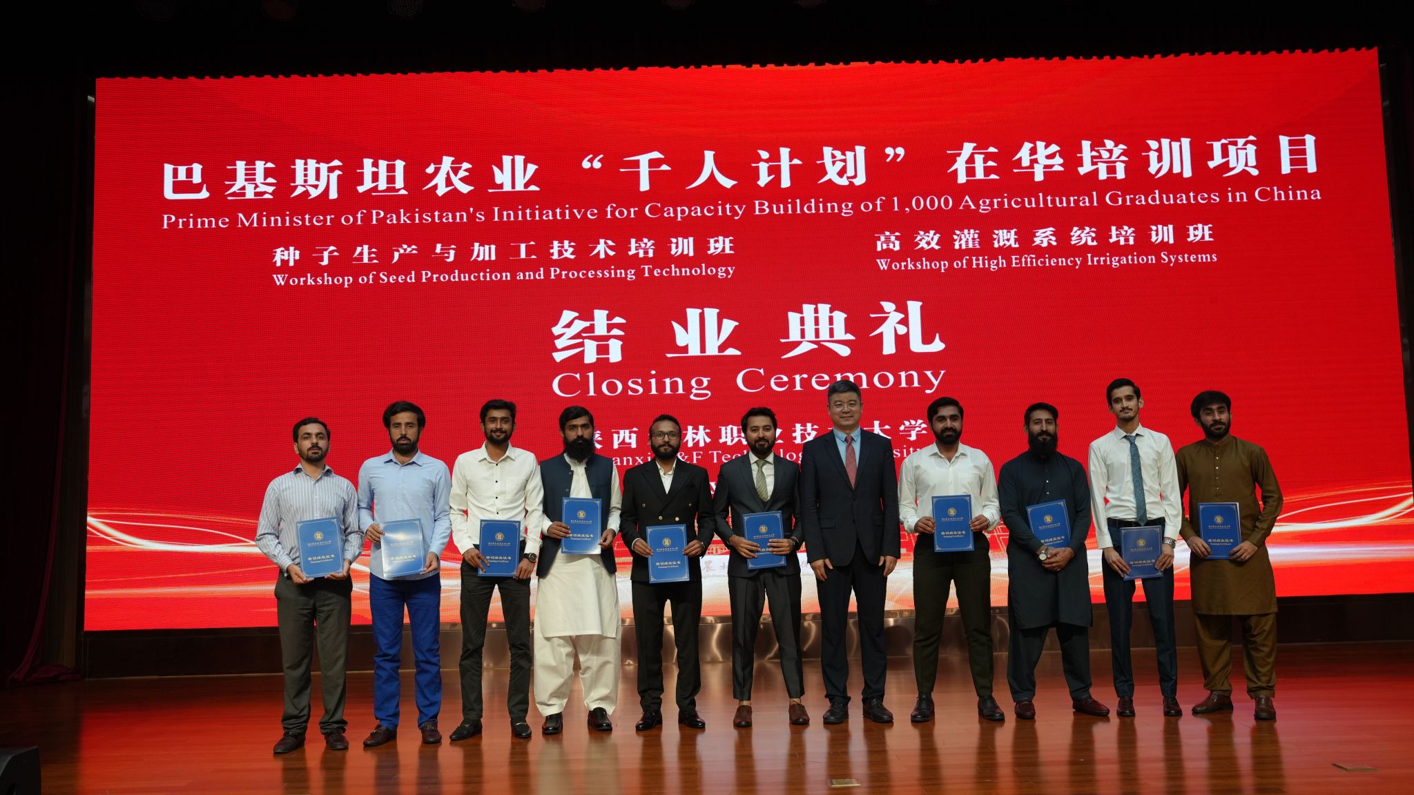 7月17日,巴基斯坦农业“千人计划”在华培训项目结业典礼在我校举行,该项目“高效灌溉系统”“种子生产加工技术”2个专业培训班98名学员顺利结业。巴基斯坦驻华大使卡里尔·哈什米,省外办副主任高进孝,我校校长仲伟周、副校长蒋平江,省外办、省教育厅外事处、杨凌示范区国际局、杨凌国际会展中心酒店相关负责人,以及我校相关部门负责人、教师代表等参加结业典礼。