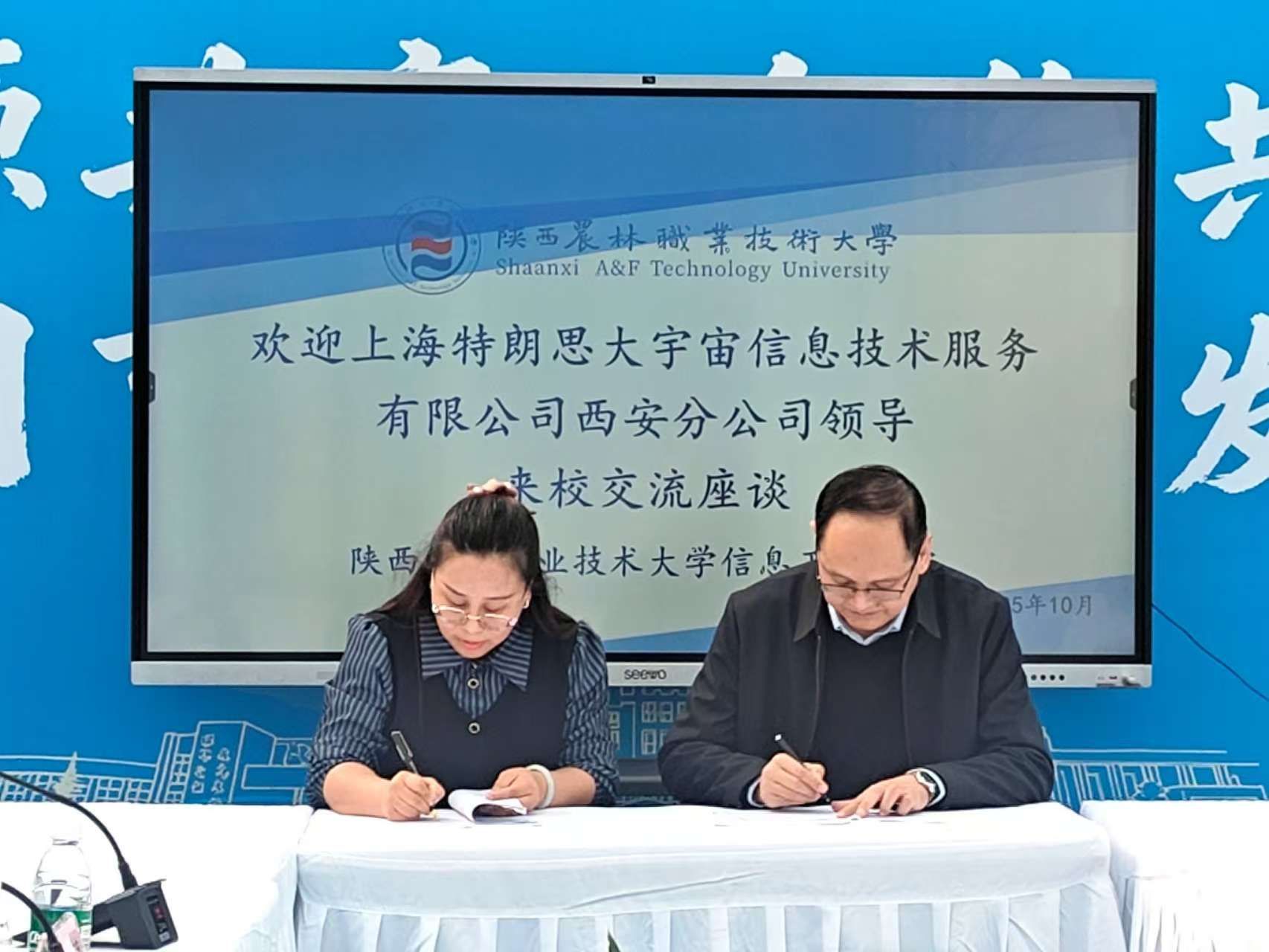 信息工程学院先后与无锡华润安盛科技有限公司、上海特朗思大宇宙信息技术服务有限公司西安分公司、陕西烽火云谷物联网技术有限公司开展校企合作交流活动。其中,与无锡华润安盛科技有限公司在学校农高会会客厅举行校企合作会谈,并带领参观了学校“农高会会客厅”、西北农林专科学校附设高职党支部活动旧址及百年伟业红色三农研学馆。与上海特朗思大宇宙信息技术服务有限公司西安分公司开展校企交流座谈,签署校企合作协议并举行授牌仪式。与陕西烽火云谷物联网技术有限公司开展校企座谈,签署校企合作协议。
