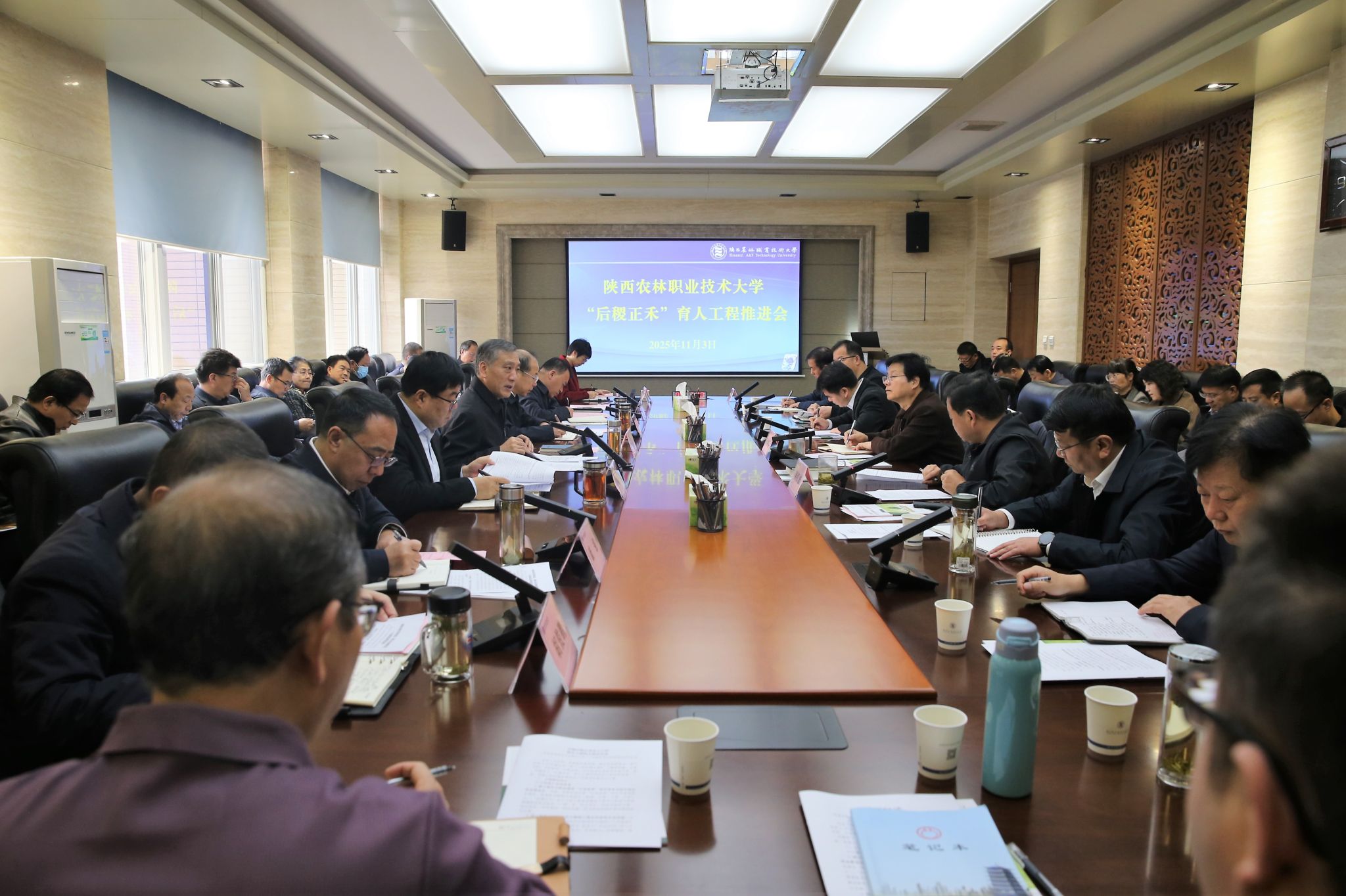 11月3日上午,学校召开“后稷正禾”育人工程推进会。党委书记韩明军出席会议并讲话,学校领导,党委委员,各部门负责人,各学院负责人参加会议。
