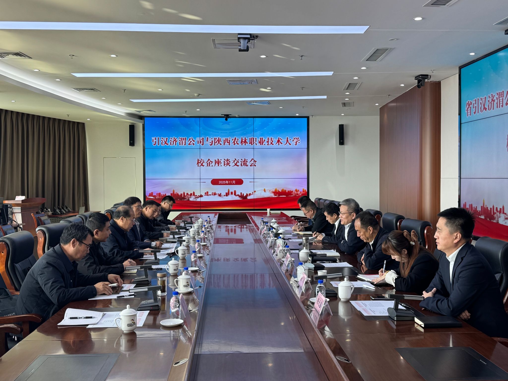 仲伟周详细介绍了学校的办学特色、专业优势和人才培养情况。他表示,陕西水务发展集团承担着多项国家级、省级重大水利工程建设任务,与学校在水利工程、建筑工程等多个专业领域高度契合。希望校企双方进一步深化合作机制,在人才培养、产教融合、基地共建、师资互聘等方面实现校企优势互补,共同推动科技创新与成果转化,为毕业生拓展更多优质就业岗位。