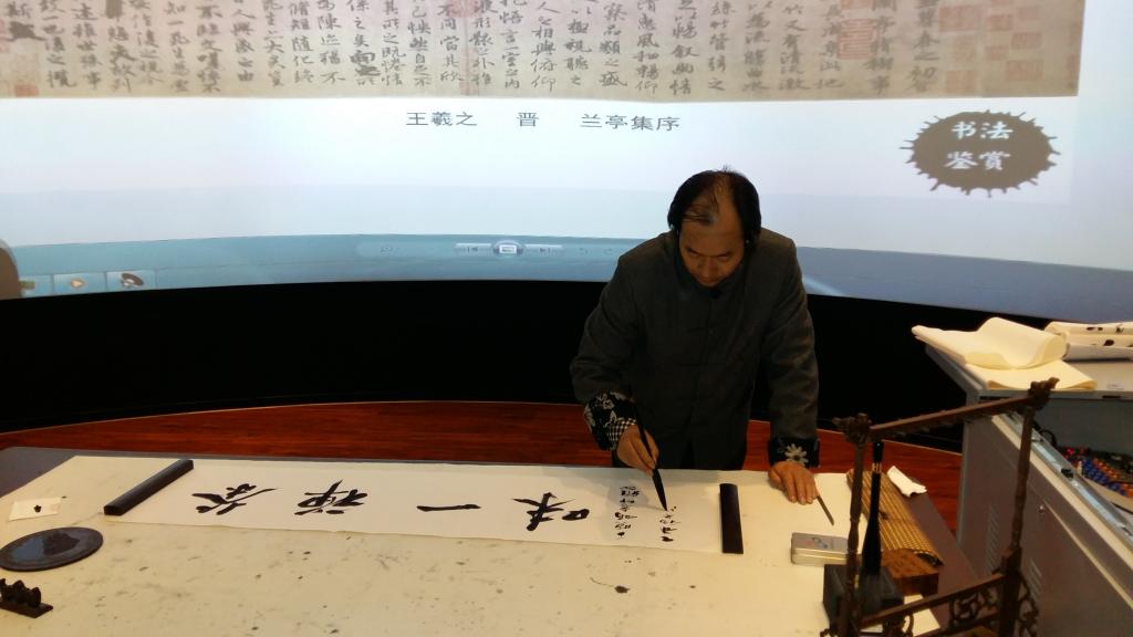 在《高山流水》的优美乐曲中,王晓娟老师身着中国传统古典服装,一边表演茶艺,一边讲解茶文化,大学生深切感受到了中国传统文化的博大精深。随后,李德君老师以新颖的视角讲述书法与茶艺的关系,并从中国书法的演化、文房四宝、书法创作及书法欣赏等方面做了系统的介绍。李老师还现场泼墨,精彩的书法展示赢得了观众的阵阵掌声。讲座内容丰富、形式新颖、艺术氛围浓厚,丰富了大学生校园文化生活,提高了大学生的艺术鉴赏能力。