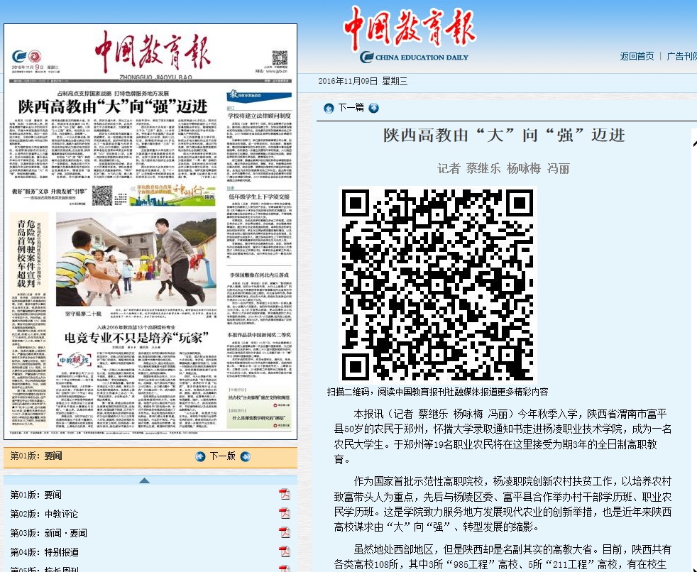 11月9日,《中国教育报》头版头条以“陕西高教由“大”向“强”迈进”为题报道了我院精准扶贫工作(详情进入)。