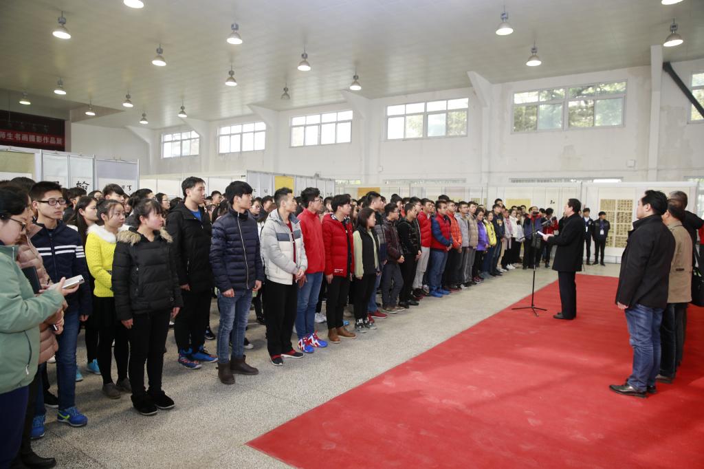 开幕式上,院党委副书记、院长王周锁发表了讲话,西安碑林书法艺术中心主任王冰介绍了展览基本情况。西安碑林博物馆副馆长李树青带领艺术中心成员王冰、朱黎明、王其祎、马志祥、刘东平,以及我院师生1000余人参加了开幕式。开幕式由院党委副书记任得元主持。