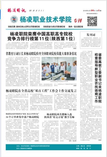 为推动校区融合、校媒融合,充分展示我院的办学特色和办学成果,提升学院社会声誉及影响力,5月16日,由农业科技报社、我院党委宣传部主办的《杨凌职业技术学院专刊》正式与大家见面了。