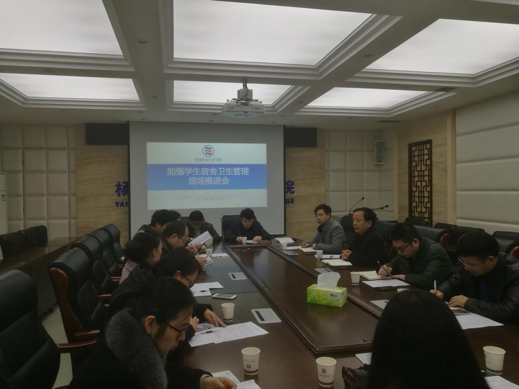 为了强化学生劳动教育,促进学生良好习惯养成,创造干净整洁住宿环境,落实学院开学工作检查会议安排,2月27日上午,学生处召集各分院学工办主任、物业公司负责人等20余人,深入三校区各学生公寓开展宿舍卫生检查,并召开了宿舍卫生管理工作推进会。