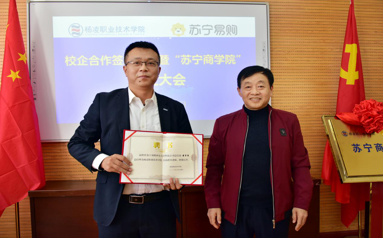 杨宏祥与杨花代表校企双方签订《苏宁商学院合作协议书》