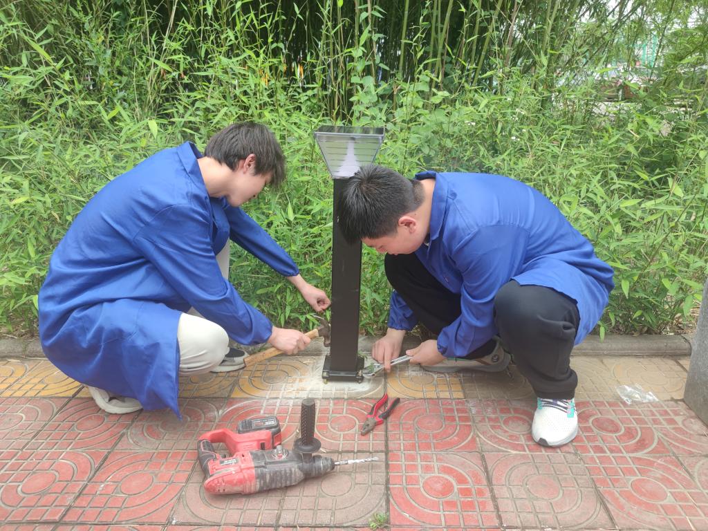 活动该学院应用电子技术专业学生发挥自己所学专业技能,历时一周,将电子元件进行组装,分别在南校区醒钟楼阶梯、秦风楼前将组装的38个太阳能照明亮化进行了安装并联合后勤保障处组织专业人员对安装的照明灯设施安全进行排查,尽力改善校园亮化条件,美化校园环境。