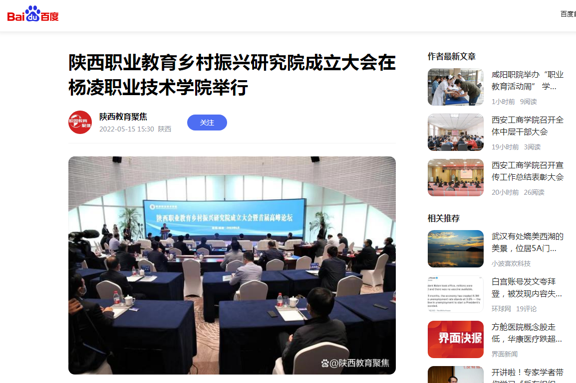 【百度APP】陕西职业教育乡村振兴研究院成立大会在杨凌职业技术学院举行