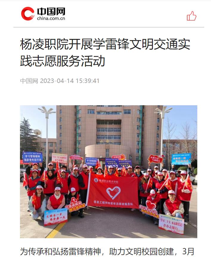 为传承和弘扬雷锋精神,助力文明校园创建,3月11日至4月11日,杨凌职业技术学院信息工程学院联合杨凌示范区交巡警支队开展“区校一体服务杨凌”学雷锋文明交通实践志愿服务活动。