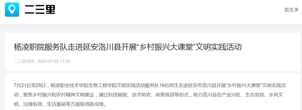 【二三里资讯】杨凌职院服务队走进延安洛川县开展“乡村振兴大课堂”文明实践活动