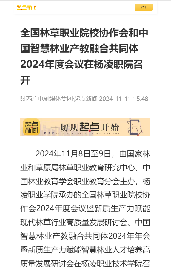 【起点新闻】全国林草职业院校协作会和中国智慧林业产教融合共同体2024年度会议在杨凌职院召开