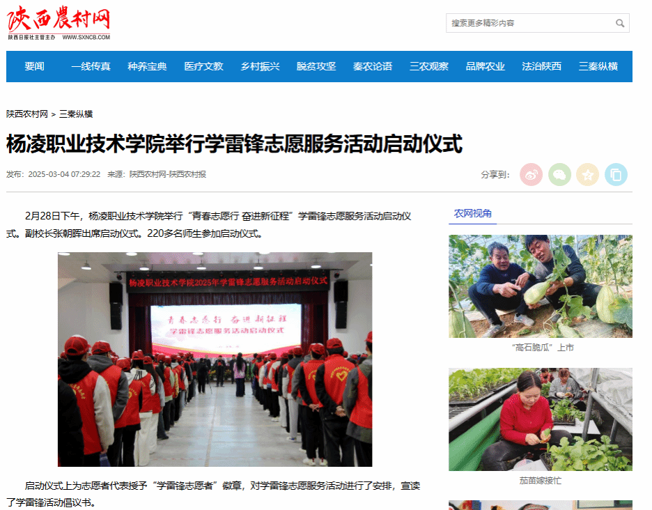 【陕西农村网】杨凌职业技术学院举行学雷锋志愿服务活动启动仪式