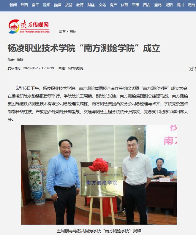 学院南方测绘学院的成立,标志着杨凌职院与南方测绘集团在合作办学方面又迈出了关键的一步,必将促进产业链、创新链和教育链三链融合,实现校企双方互利共赢,为行业发展作出持续贡献。(文/图 通讯员 崔晓)