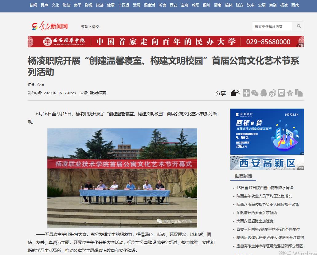 6月16日至7月15日,杨凌职院开展了“创建温馨寝室、构建文明校园”首届公寓文化艺术节系列活动。