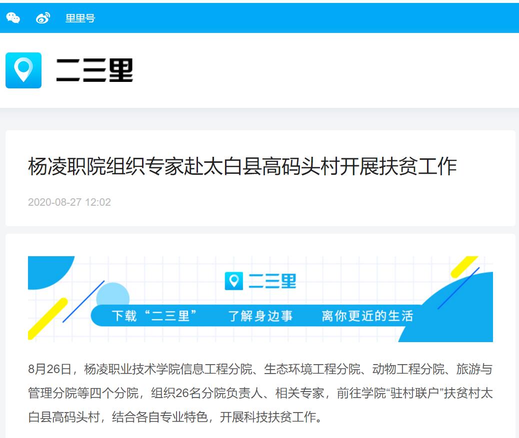 8月26日,杨凌职业技术学院信息工程分院、生态环境工程分院、动物工程分院、旅游与管理分院等四个分院,组织26名分院负责人、相关专家,前往学院“驻村联户”扶贫村太白县高码头村,结合各自专业特色,开展科技扶贫工作。