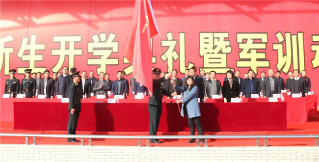 杨凌职院党委书记陈宁向军训团授旗