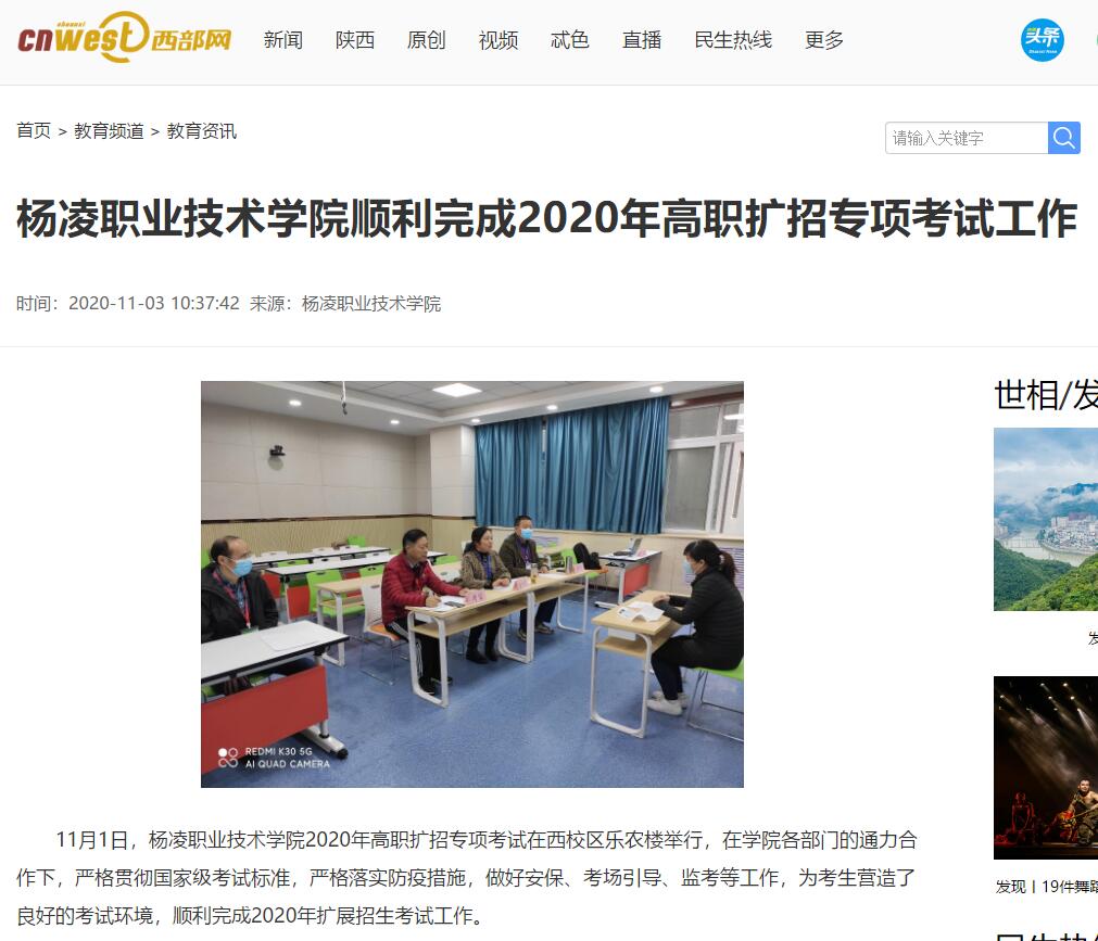 【西部网】杨凌职业技术学院顺利完成2020年高职扩招专项考试工作
