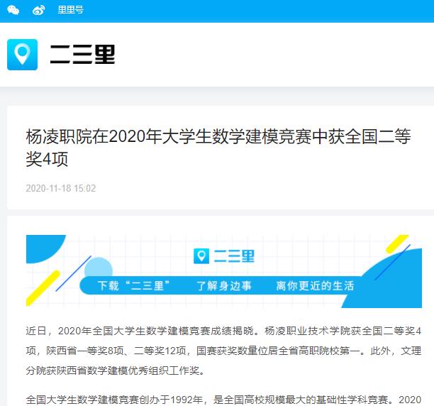 近日,2020年全国大学生数学建模竞赛成绩揭晓。杨凌职业技术学院获全国二等奖4项,陕西省一等奖8项、二等奖12项,国赛获奖数量位居全省高职院校第一。此外,文理分院获陕西省数学建模优秀组织工作奖。