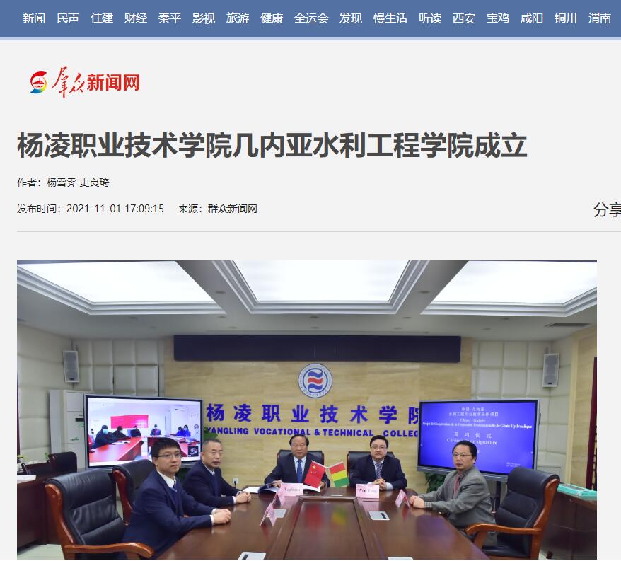 10月30日下午,由杨凌职业技术学院与几内亚科纳克里大学、几内亚科纳克里大学孔子学院共同合作的中国—几内亚水利工程专业教育合作项目(杨凌职业技术学院几内亚水利工程学院)签约仪式在线上举行。