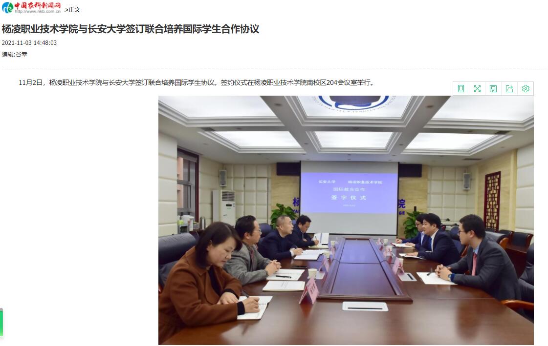 【中国农科新闻网】杨凌职业技术学院与长安大学签订联合培养国际学生合作协议