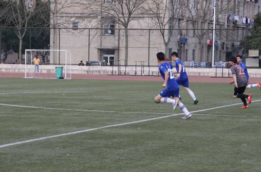 4月14日,南校足球场热闹非凡,信息工程分院绿茵竞技社同经济与贸易分院足球队在绿茵场上进行了一场精彩的足球友谊赛。
