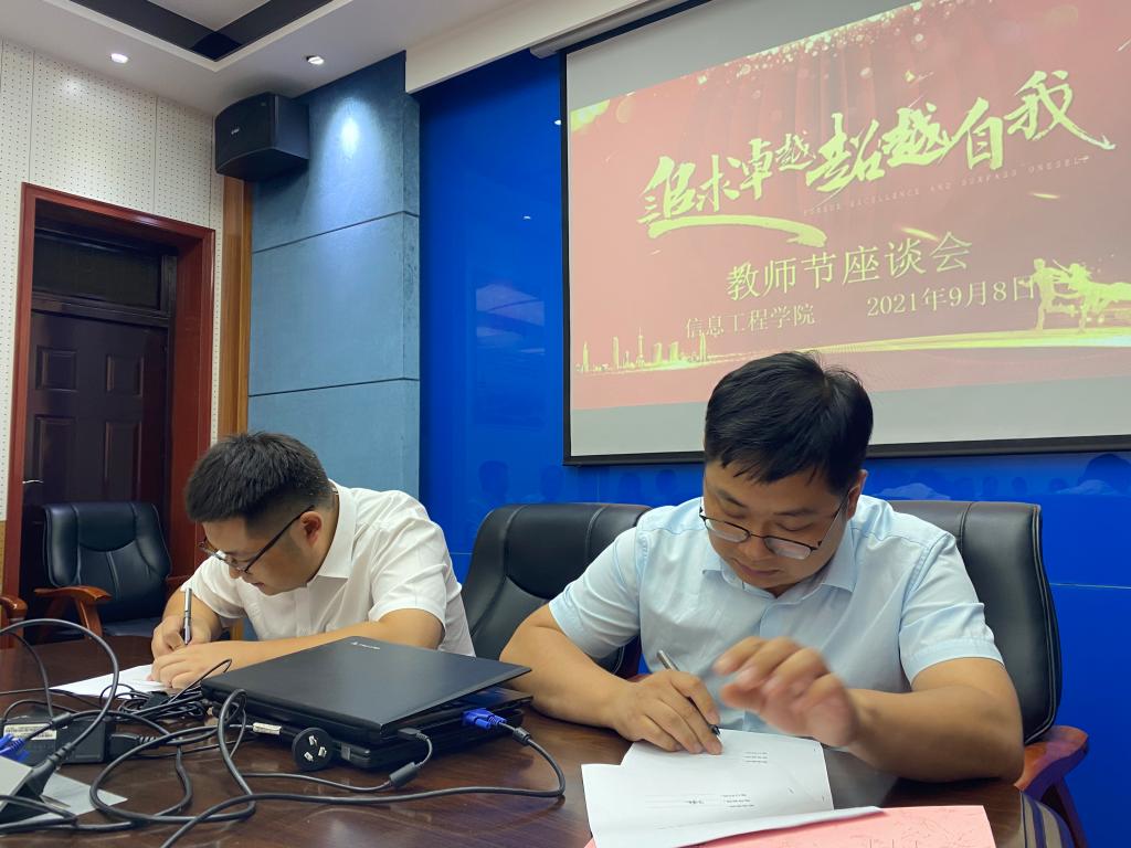 为庆祝第37个“教师节”,信息工程学院举办庆祝教师节系列活动。9月8日下午,信息工程举办了教师节座谈会暨以老带新签约仪式。