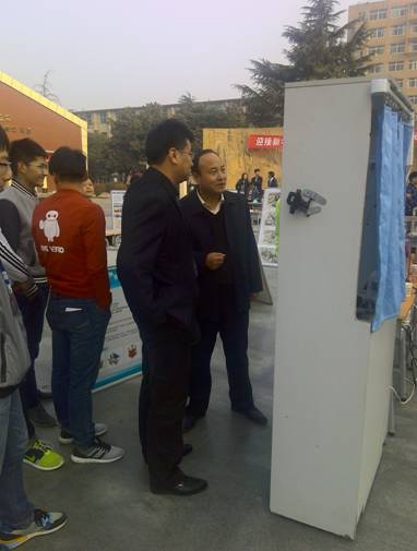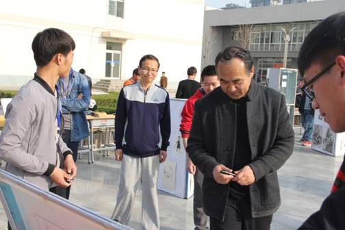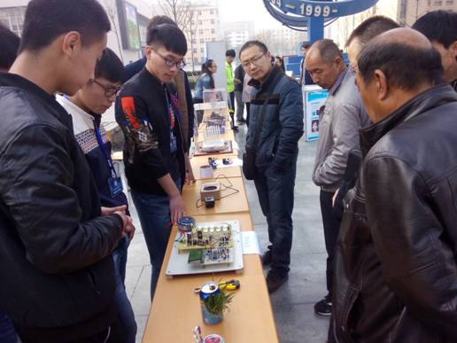 活动得到了专业老师和校领导的大力支持,全院上下不少教职工和各学生都参与了进来,学院党委书记赵曼老师亲临现场,当他看到学生制作的家庭自动监控系统及利用废旧纸箱、器材制作的家电产品时,赵书记结合党中央“十八大五中全会”的“创新发展”和“绿色发展”思路,勉励同学在今后的学习生活中坚持“创新、环保、绿色”的理念,全面提升自身综合素质和专业技能水平。